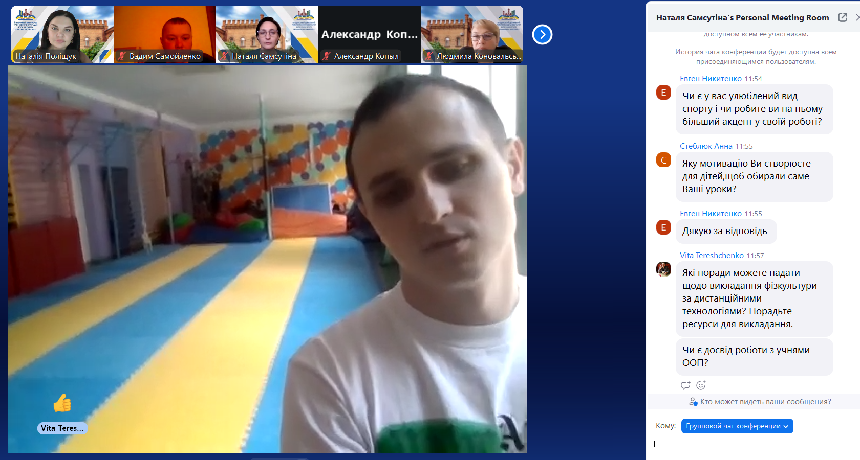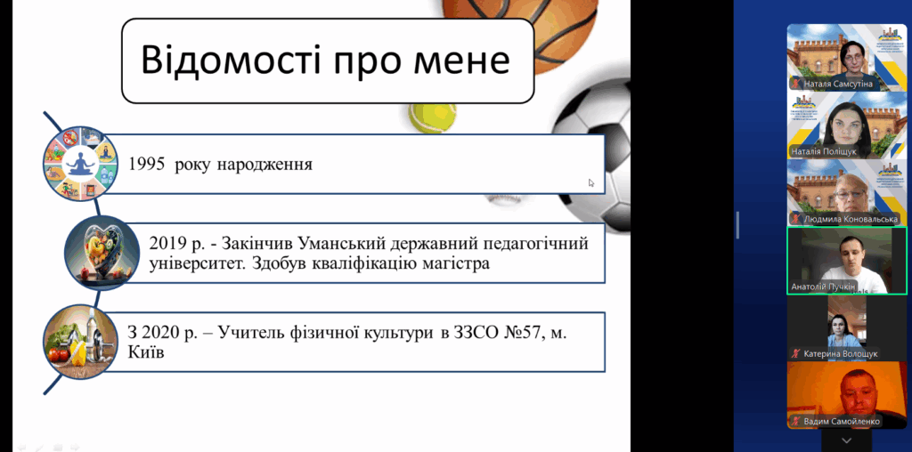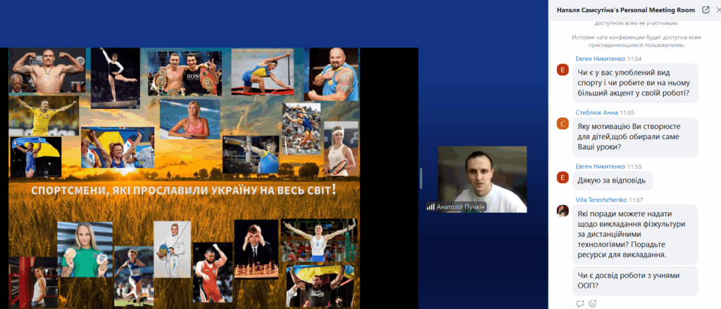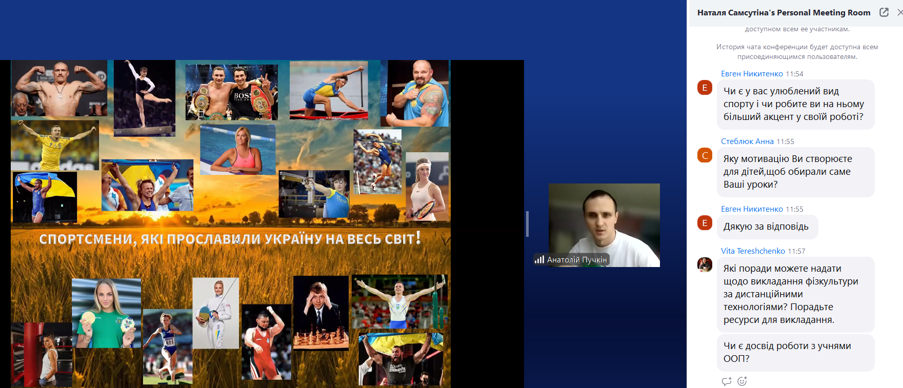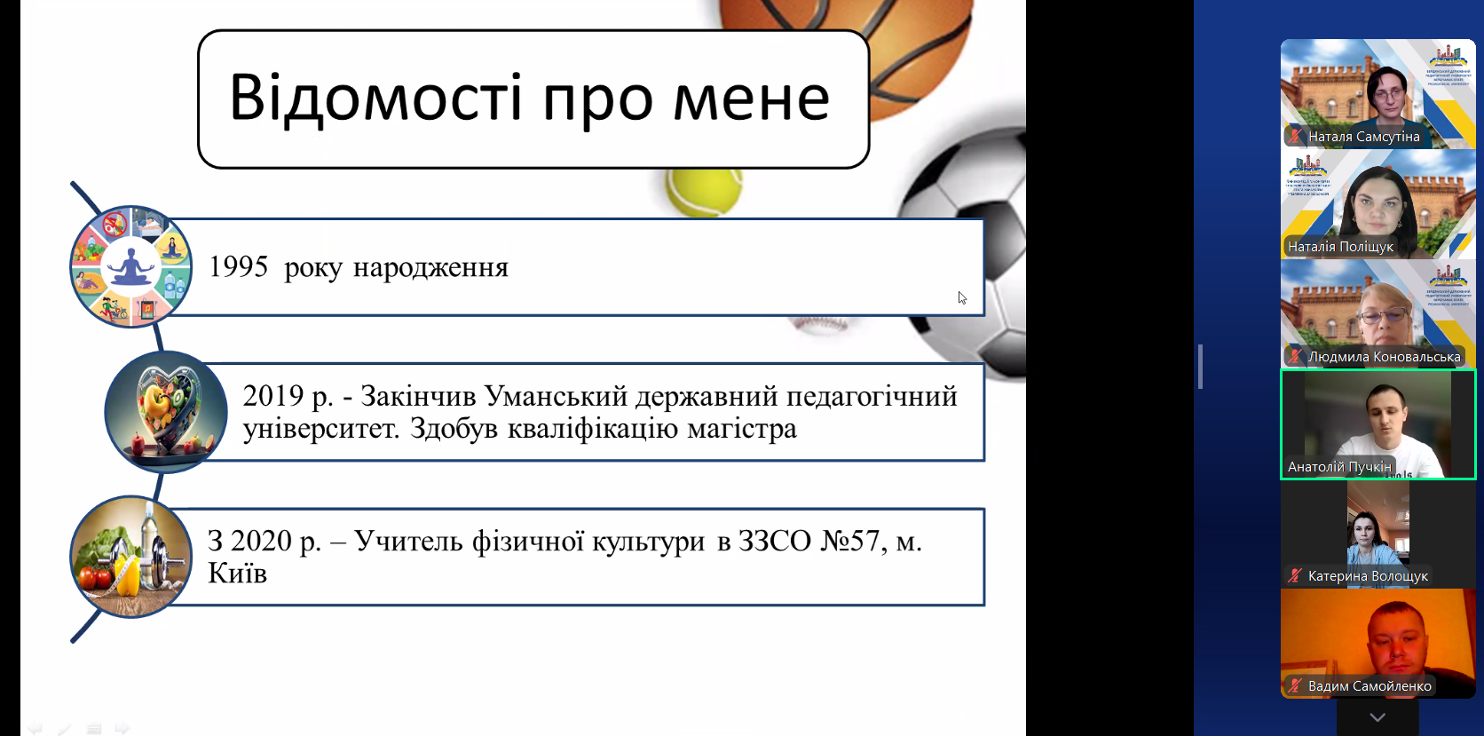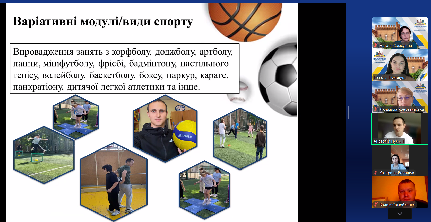 Під час зустрічі Анатолій Олександрович представив змістовну презентацію та продемонстрував відеоматеріали зі своєї педагогічної практики. У своїй доповіді він поділився досвідом організації сучасного уроку фізичної культури, розповів про підходи до підвищення рухової активності учнів, формування їхньої мотивації до занять фізичною культурою та популяризації здорового способу життя серед школярів.