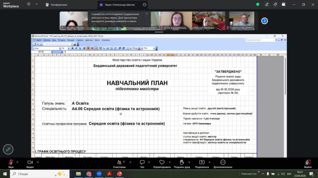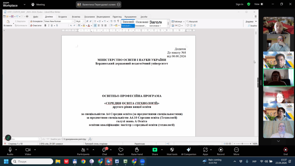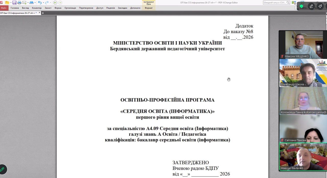 24 квітня відбулася традиційна зустріч гарантів освітніх програм спеціальності «Середня освіта» факультету ФМКТО зі стейкхолдерами. На зустрічі, крім завідувачів кафедр і гарантів, були присутні представники Бердянських і Київських закладів загальної середньої освіти: