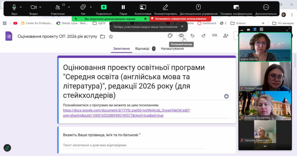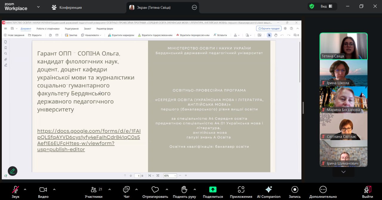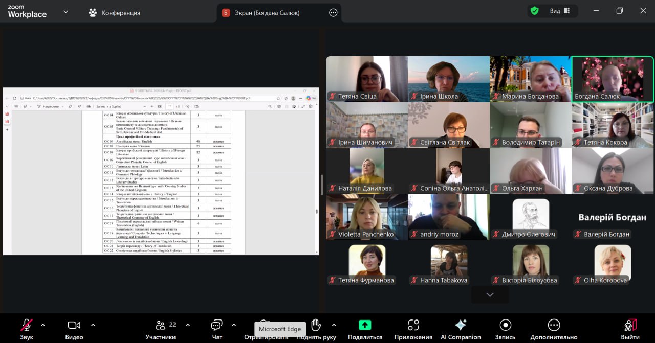 24 березня 2026 року о 14:00 відбулася планова зустріч зі стейкхолдерами філологічних спеціальностей Бердянського державного педагогічного університету у форматі онлайн-конференції.
