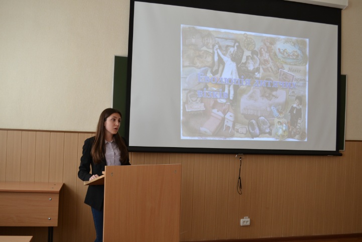 Для студентів І курсу старшокурсники, члени наукового гуртка «Досліджуємо історію дошкільної освіти», підготували цікаві доповіді-презентації. Присвячені вони були проблемам, безпосередньо пов’язаним з дитинством й близькі всім нам, бо, як нагадала слова відомого класика педагогіки, керівник секції доцент І.Улюкаєва, «усі ми родом з дитинства». З великим інтересом сприймали учасники конференції доповіді-презентації на теми: «Історія дитячого візка», «Історія іграшки», «Історія ляльки», «Дитячий садок у ретроспективі», «Дитина й історія країни». Особливо було відмічено якість підготовлених презентацій: вони були стилізовані, враховували й предмет дослідження, й особливості тієї або іншої епохи. Доценту І.Улюкаєвій було запропоновано розмістити ці презентації на сторінці ІСПКО у соціальній мережі та медіатеці інституту.