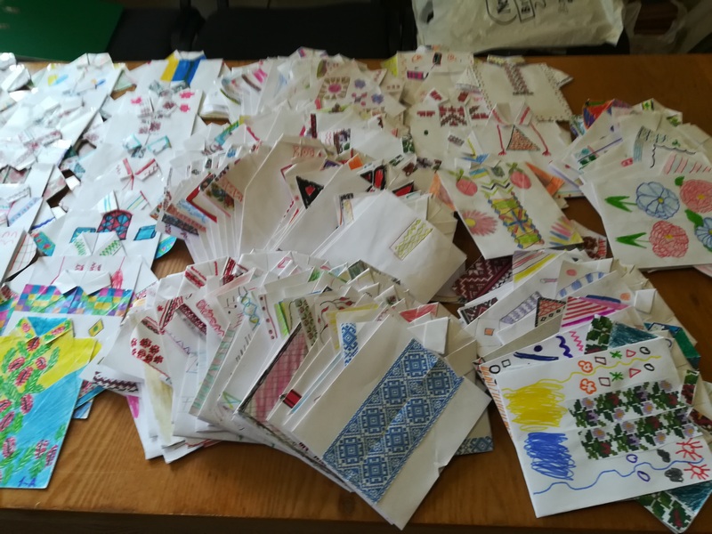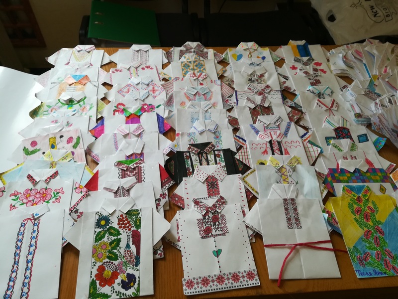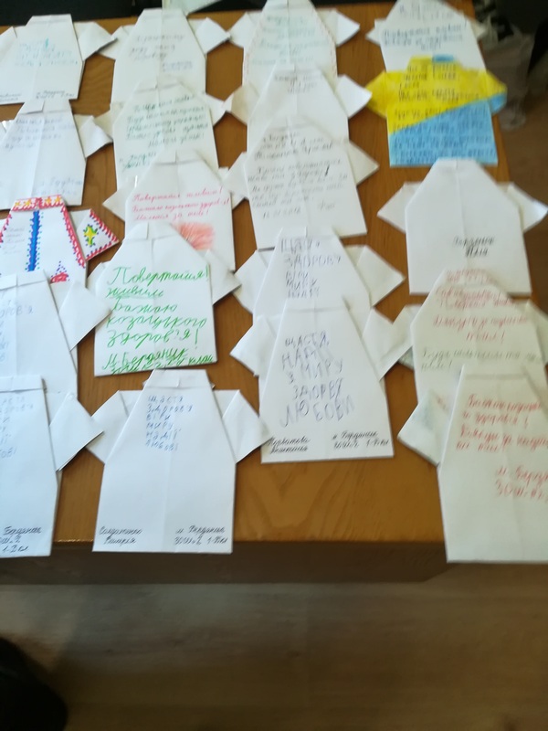 …Коли згодом ми розглядали-перелічували оці (див. світлини), виготовлені дітьми такі зворушливі послання солдатикам на фронт, то на ум нам спадало одне: хіба може нас хтось поневолити, якщо підростає покоління таких українців? Ніколи!!!».